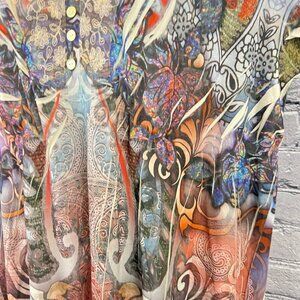 Live and Let Live Womens Size 1X V-neck Lace Button Detail Paisley Print Top