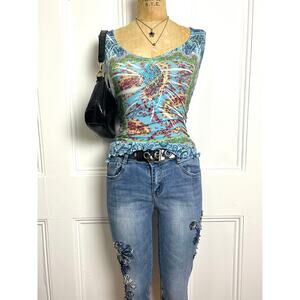 Live and let live Bohochic multicolor retro print rank with studded front decoration, have a ruffled edge, says M but it’s altered to an S🦋