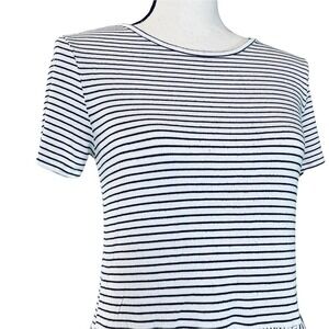 Live in the Moment striped shirt sleeve top with ruffle bottom. Black and white. Women’s, size small.