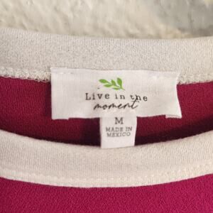 Live in the Moment Women's Size Medium Small Crop Hot Pink/White Long Sleeve New
