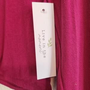 This Live in the Moment lightly cropped, women's size medium, long sleeve shirt with a white collar in a beautiful pink is new without tags. Never been worn, this long sleeve shirt is lightweight, comfortable and would be cute all year long.
