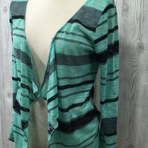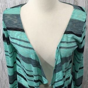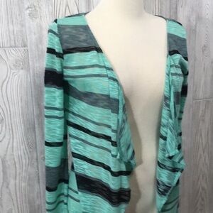 Live to Be Spoiled Open Cardigan Large Turquoise Black Striped