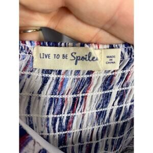 Live to be Spoiled, Size Small, White, Red, & Blue Abstract Print Tiered Dress