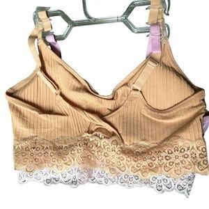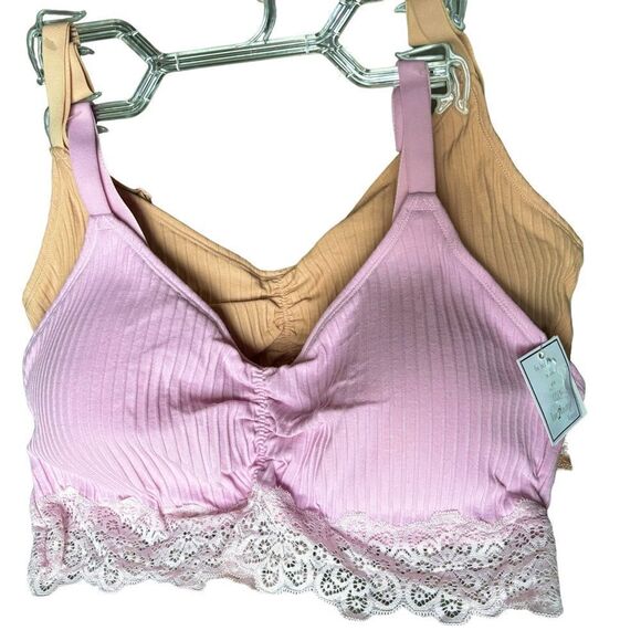 Live2Lounge Bralette Set of 2 Bra Pink Tan Lace 2X XXL