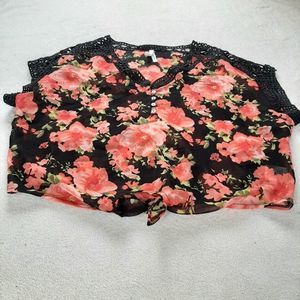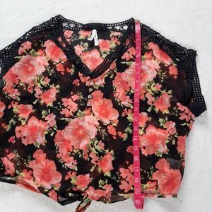 Pre-Owned black floral see thru crop top with 4 button down top in good condition. Approx measurements are pictured.