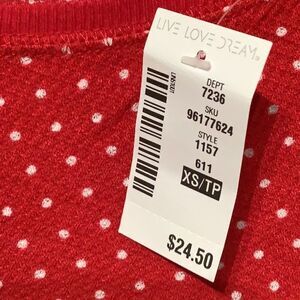 Super cute sleep shirt red with white polka dots and reads ”all you need is sleep”