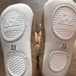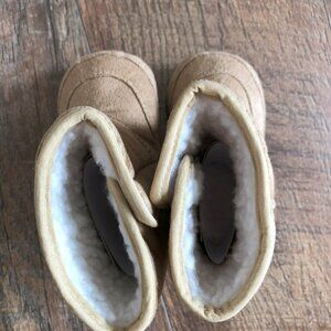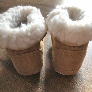 These pull-on baby boots are a high-quality cotton with soft soles with Velcro and elastic openings to help keep them on. They are soft, lightweight, and anti-slip sole. They are in size 6 to 12 months which is considered size 5 shoe.