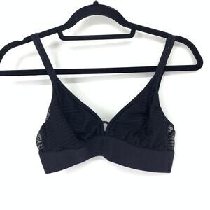 Lively Bra Women's Sz M Busty Stripe Mesh Bralette Black Lightly Lined Semi Sheer
