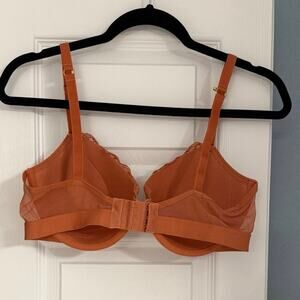 This Lively Lace T-Shirt Underwire Bra is in excellent condition, as it has been washed but never worn! The beautiful terra cotta color is sure to please. The straps are convertible to racerback for extra versatility. Don't miss out on this amazing deal!