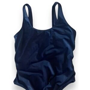 Looking for a stylish and comfortable one-piece swim suit that's perfect for summer? Check out this Lively navy blue suit with a low cut back. It's made from a durable and stretchy nylon/spandex material that's both machine washable and easy to care for. This suit is available in size large and features a solid pattern that's sure to turn heads. Whether you're lounging by the pool or hitting the beach, this Lively one-piece is a great choice for any woman who wants to look and feel her best.