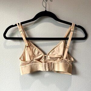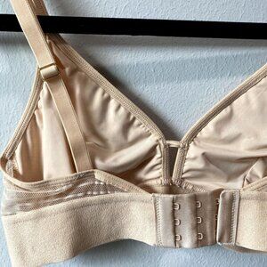 * Features: light tan sleek nylon cups, triangle shaped, lined with soft mesh, stretchy micro-mesh, adjustable back straps, 3-level band adjusting hook and eye for that perfect "you fit"