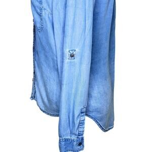 Liverpool 100% Lyocell Chambray Denim Button Down Long Sleeve Button Tab Shirt