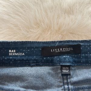 Such a fun yet classic pattern design Bae Bermuda Jean short by Liverpool Jean Company. These Bermuda jean shorts have a unique light to dark fade coloring hue.
