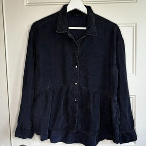 Liverpool Black Acid Wash Button Down Layering Shirt Lyocell Sz-Small