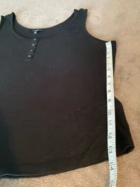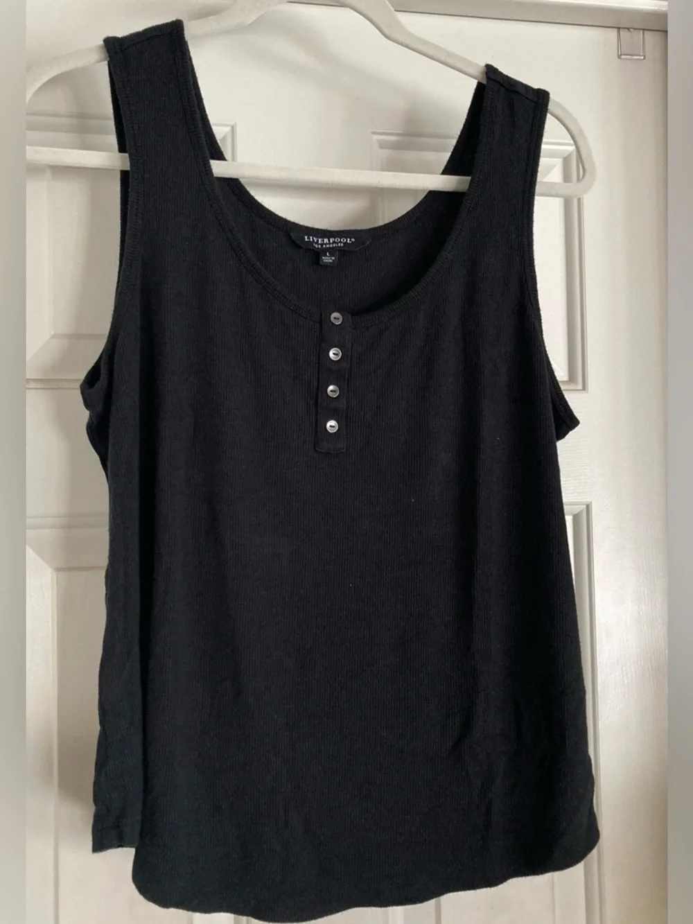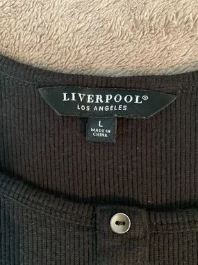 Liverpool Black Ribbed Button-Front Tank