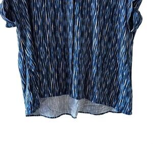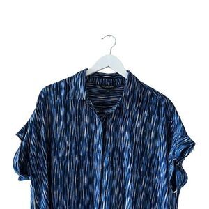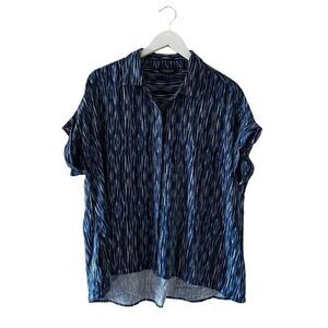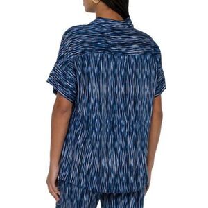 Liverpool Blue Black Abstract Collared Camp Shirt with Hi-Low Hem Viscose SZ M