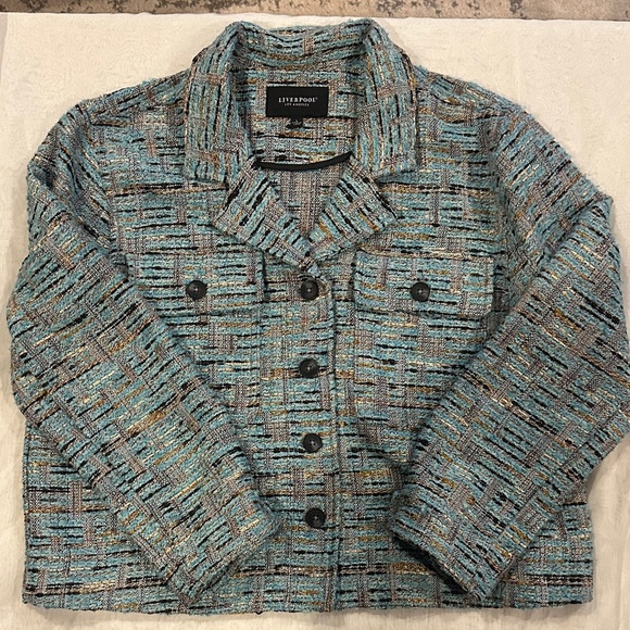 Chic tweed blazer with a blend of blue and brown tones. In the color Ocean Boucle.