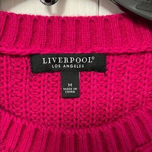 Liverpool Cable-Front Crewneck Sweater in Raspberry
