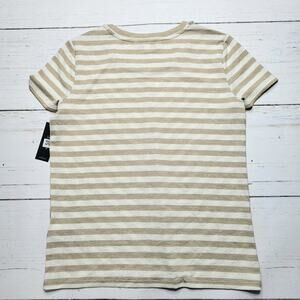 Liverpool Chevron Crewneck Tee Shirt Short Sleeve Top Stripe Beige White Small
