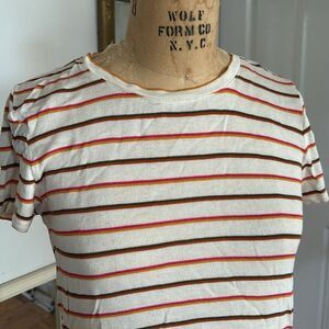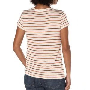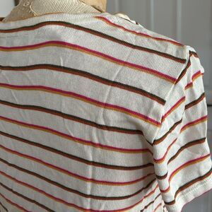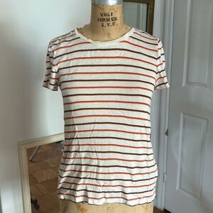 Liverpool Cream Mod Striped Short Sleeved Crewneck Top - Size Medium