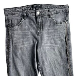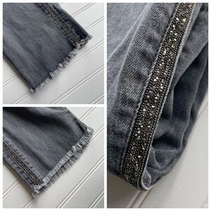 Liverpool Crop Straight Jean Ankle denim Gray Size 10 Bling Side Stripe Fray hem