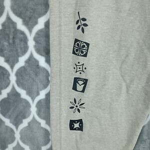 Light wear with minor signs of use. Small pinhole near the waistband shown in photos. No other major flaws noted; embroidery and prints are intact, waistband and cuffs retain stretch.