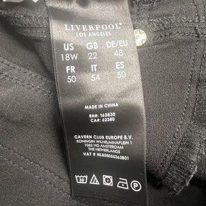 Features: Frayed/raw edge hem, soft stretch denim, classic five pocket details, easy pull-on waist with faux front fly, Liverpool Los Angeles branding, mid-rise fit