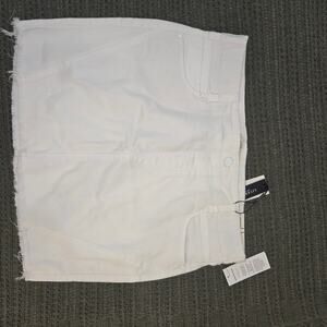Raw hem denim mini skirt, has good stretch