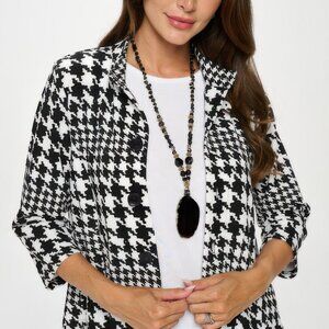 Make a statement in the Liverpool Jacket, a polished layer with refined structure and bold personality. Featuring a striking print and tailored fit, this jacket is ideal for work, events, or everyday chic. The quarter-length sleeves and lightweight fabric offer comfort and versatility, while the open front keeps the styling modern. Made in the USA.
