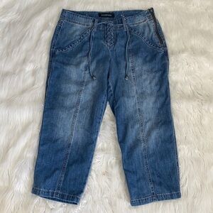 Liverpool Jeans Company Tie Detail Zip Capri Cropped Y2K Style Jeans 6/28