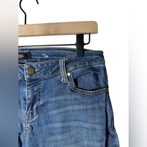 Keywords: Liverpool skinny jeans, women’s distressed denim, size 6 / 28 jeans, mid-rise blue jeans, casual streetwear denim, Liverpool Jeans Company pants, slim fit jeans, ripped knee jeans.