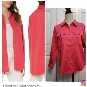 Liverpool Longline Shacket in Pink Watermelon Lagenlook Office Stitch Fix Sz LG