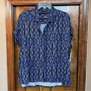Liverpool Los Angeles Abstract Print Camp Shirt in Linear Abst Prnt Sz S NWT