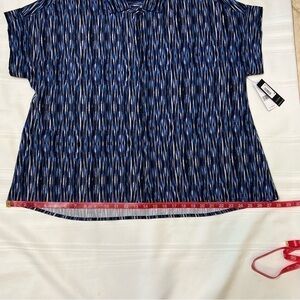 Nautical hues of blues, blacks and whites make this top the perfect addition to your wardrobe. Pairs beautifully with denim.