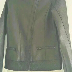 Liverpool Los Angeles Black Jacket Coated Quilted Moto Zip Pockets Small