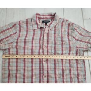 Liverpool Los Angeles Button shirt Red Light Blue Plaid Short Sleeve Men's Large