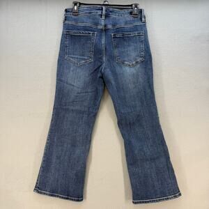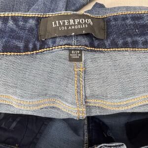 Liverpool Women's Denim Jeans. Blue in color. Tagged size 8/29. These women's Liverpool jeans feature a five pocket design, a boot cut leg and a high rise fit. Style number LM7028CH4. In preowned condition with minimal signs of wear.