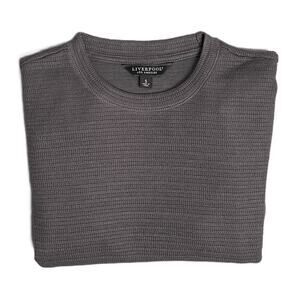 This listing is for a new with tags Liverpool Los Angeles Men's Small T-Shirt in Grey. Crew Neck, Long Sleeve, Stretch Fabric. 69% Polyester, 24% Cotton, 6% Viscose, 1% Spandex, Machine Washable.