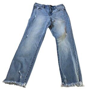 Mid rise distressed jeans by Liverpool Los Angeles. Frayed hem adds a stylish edge. Perfect for casual wear or a night out. Women's size 2/26.