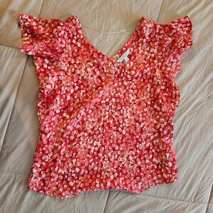 Liverpool Los Angeles Petite V-Neck Flutter Sleeve Blouse Top Shirt Watermelon
