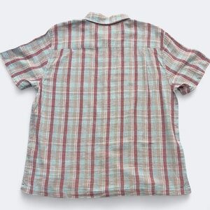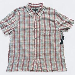Liverpool Los Angeles Shirt Mens Large Aqua Red Plaid Linen Cotton Short Sleeve