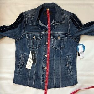 Liverpool Los Angeles Velvet Trim Frayed Denim Jacket Sz S NWT
