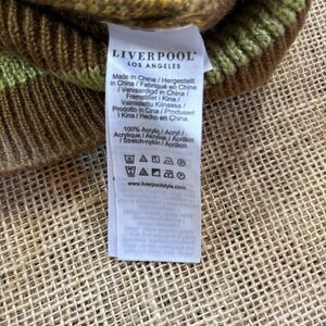 This Liverpool Los Angeles Woman's Argyle Brown/Green V-Neck Sweater in size small is a stylish and versatile piece perfect for fall, winter, or spring. Made from acrylic material in a tight-knit style, this sweater features a classic V-neckline and long sleeves, making it suitable for casual or travel occasions. The argyle/diamond pattern adds a touch of sophistication, while the brown/green color adds a pop of personality. Easy to care for with machine washable instructions, this pullover sweater from the renowned brand Liverpool Los Angeles is a must-have addition to any woman's wardrobe.
