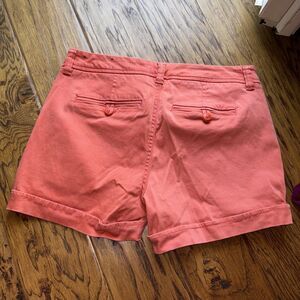 Liverpool Los Angeles pumpkin orange peach coral women shorts zip button pockets cuffed cotton lyocell elastane 4/27 inseam 3.5”