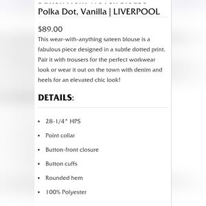 🇺🇸 Liverpool NWTs All Over Dot Vanilla Blouse