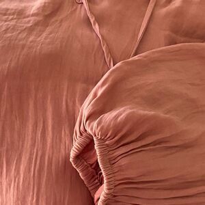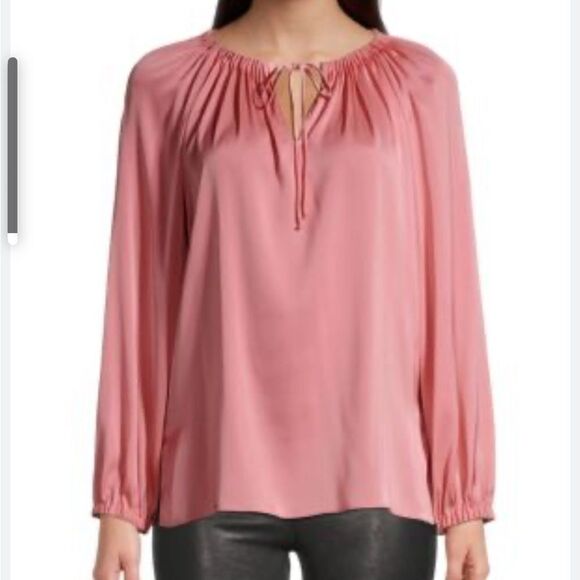 Liverpool Pink Pleated Long Sleeve Blouse with Split Neck That Ties. Size Large