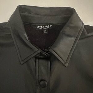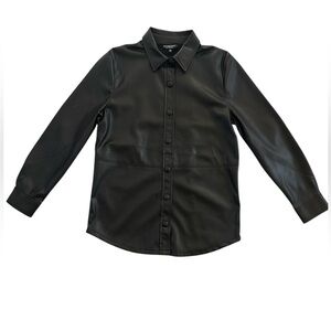 Liverpool Seamed Faux Vegan Button-down Leather Shacket, Black, Size XS