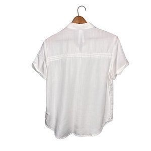 Liverpool Small White Pleated Detail Lyocell Short Sleeve Button Front Shirt Top