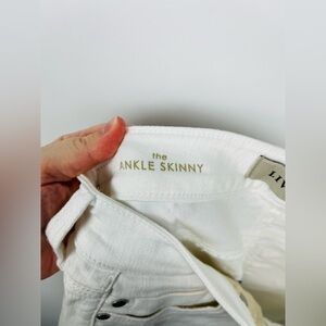 Medium rise skinny ankle jeans in classic white. Size 2/26. Waist about 14.5 inches laying flat. About 9 inch rise and 27.5 inch inseam. Excellent condition with no defects.