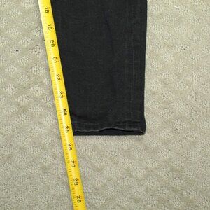 Liverpool Skinny Jeans in black, size 6/28, feature a high rise and ankle length. Made of a comfortable stretch denim fabric, they have a slim fit with a 5-pocket design and a mid-rise waist. The jeans have button and zipper accents, a dark wash, and are suitable for winter, fall, and spring wear. The city-inspired design with a touch of 90s style makes them a versatile addition to any wardrobe.